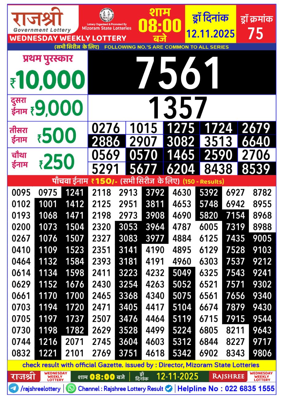 Rajshree Lottery Result 8PM 12.11.25 Share: XFacebookPinterestRedditVKDiggLinkedinMix Related Results Rajshree Lottery Result 8PM 16.01.26 Rajshree Lottery Result 8PM 15.01.26 Rajshree Lottery Result 8PM 14.01.26 Rajshree Lottery Result 8PM 13.01.26