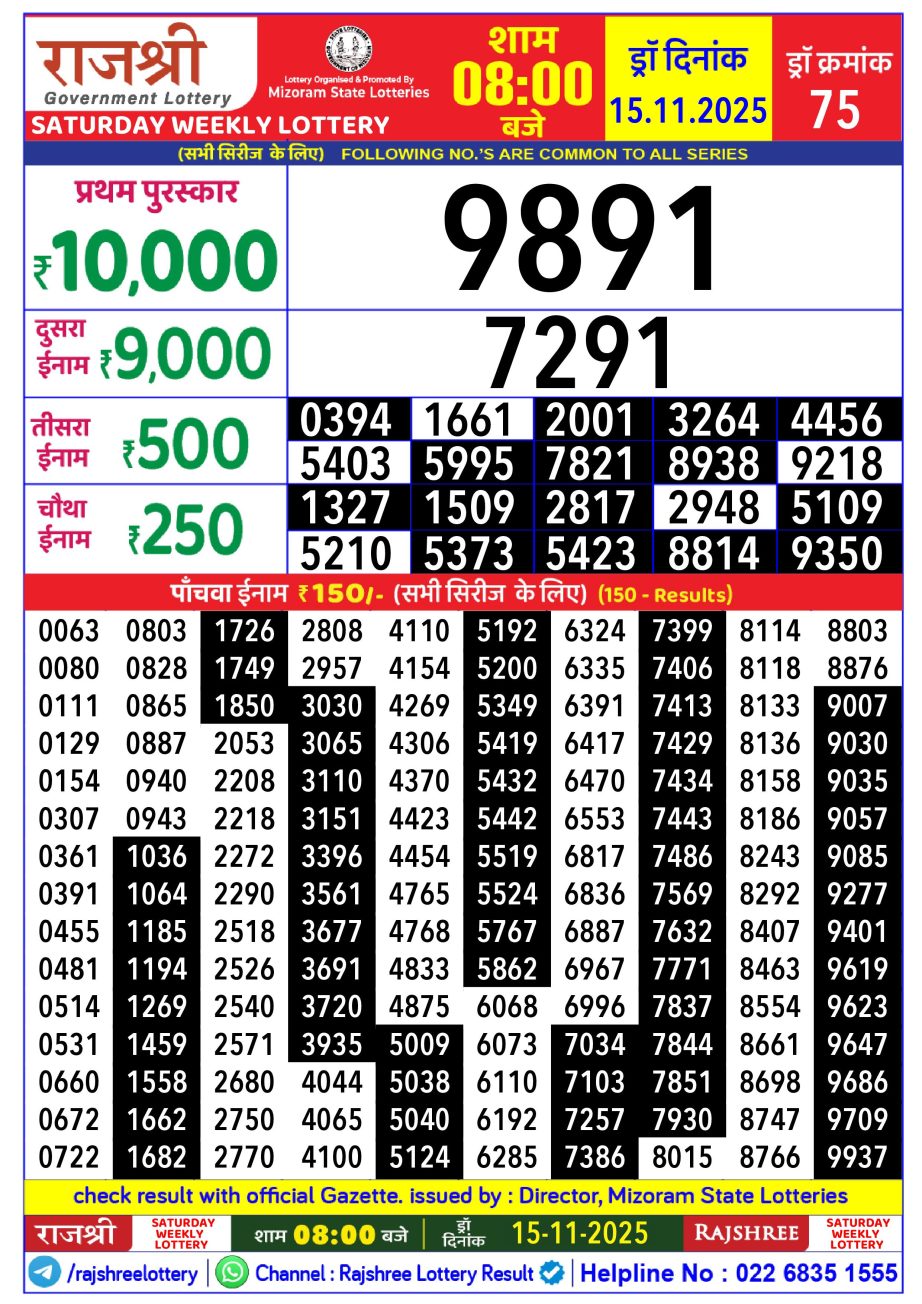 Rajshree Lottery Result 8PM 15.11.25 Share: XFacebookPinterestRedditVKDiggLinkedinMix Related Results Rajshree Lottery Result 8PM 14.12.25 Rajshree Lottery Result 8PM 13.12.25 Rajshree Lottery Result 8PM 12.12.25 Rajshree Lottery Result 8PM 11.12.25