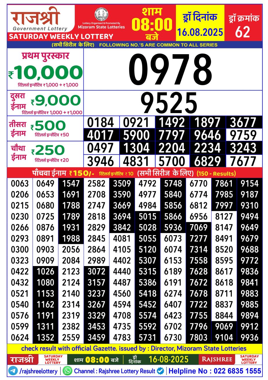 Rajshree Lottery Result 8PM 16.08.25 Share: XFacebookPinterestRedditVKDiggLinkedinMix Related Results Rajshree Lottery Result 8PM 13.10.25 Rajshree Lottery Result 8PM 12.10.25 Rajshree Lottery Result 8PM 11.10.25 Rajshree Lottery Result 8PM 10.10.25