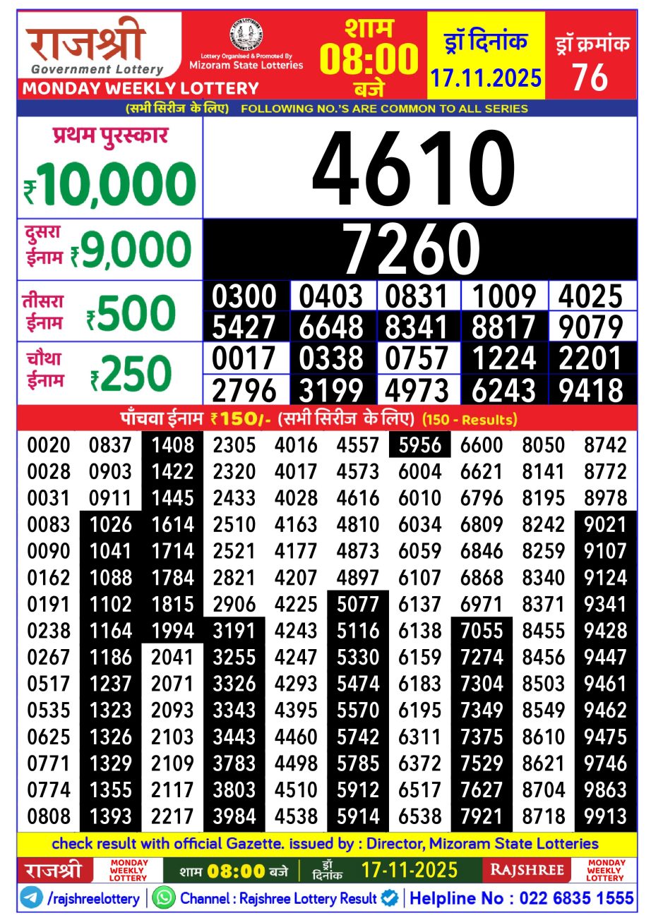 Rajshree Lottery Result 8PM 17.11.25 Share: XFacebookPinterestRedditVKDiggLinkedinMix Related Results Rajshree Lottery Result 8PM 14.12.25 Rajshree Lottery Result 8PM 13.12.25 Rajshree Lottery Result 8PM 12.12.25 Rajshree Lottery Result 8PM 11.12.25