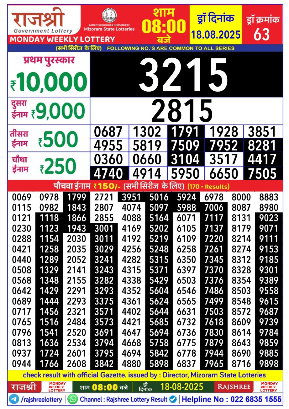 Rajshree Lottery Result 8PM 18.08.25 Share: XFacebookPinterestRedditVKDiggLinkedinMix Related Results Rajshree Lottery Result 8PM 14.10.25 Rajshree Lottery Result 8PM 13.10.25 Rajshree Lottery Result 8PM 12.10.25 Rajshree Lottery Result 8PM 11.10.25