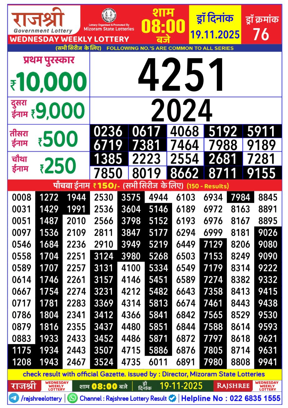 Rajshree Lottery Result 8PM 19.11.25 Share: XFacebookPinterestRedditVKDiggLinkedinMix Related Results Rajshree Lottery Result 8PM 14.12.25 Rajshree Lottery Result 8PM 13.12.25 Rajshree Lottery Result 8PM 12.12.25 Rajshree Lottery Result 8PM 11.12.25