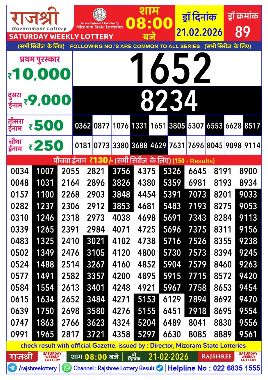 Rajshree Lottery Result 8PM 21.02.26 Share: XFacebookPinterestRedditVKDiggLinkedinMix Related Results Rajshree Lottery Result 8PM 02.03.26 Rajshree Lottery Result 8PM 01.03.26 Rajshree Lottery Result 8PM 28.02.26 Rajshree Lottery Result 8PM 27.02.26