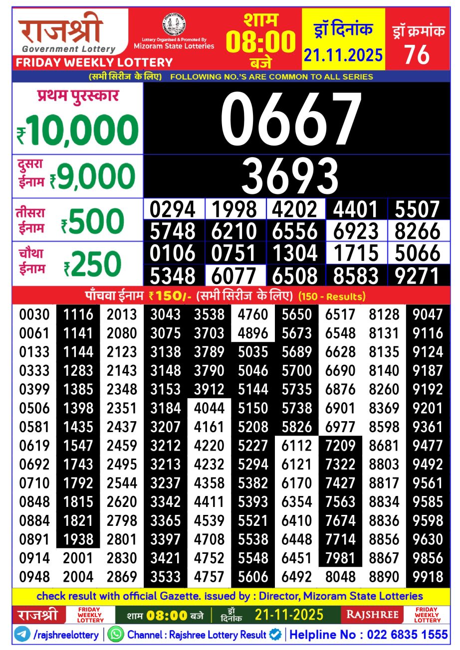 Rajshree Lottery Result 8PM 21.11.25 Share: XFacebookPinterestRedditVKDiggLinkedinMix Related Results Rajshree Lottery Result 8PM 14.12.25 Rajshree Lottery Result 8PM 13.12.25 Rajshree Lottery Result 8PM 12.12.25 Rajshree Lottery Result 8PM 11.12.25