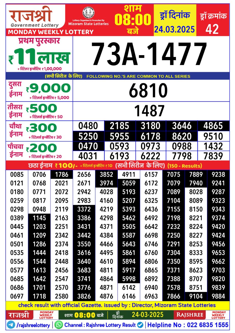 Rajshree Lottery Result 8PM 24/03/25 Share: XFacebookPinterestRedditVKDiggLinkedinMix Related Results Rajshree Lottery Result 8PM 13.12.25 Rajshree Lottery Result 8PM 12.12.25 Rajshree Lottery Result 8PM 11.12.25 Rajshree Lottery Result 8PM 10.12.25