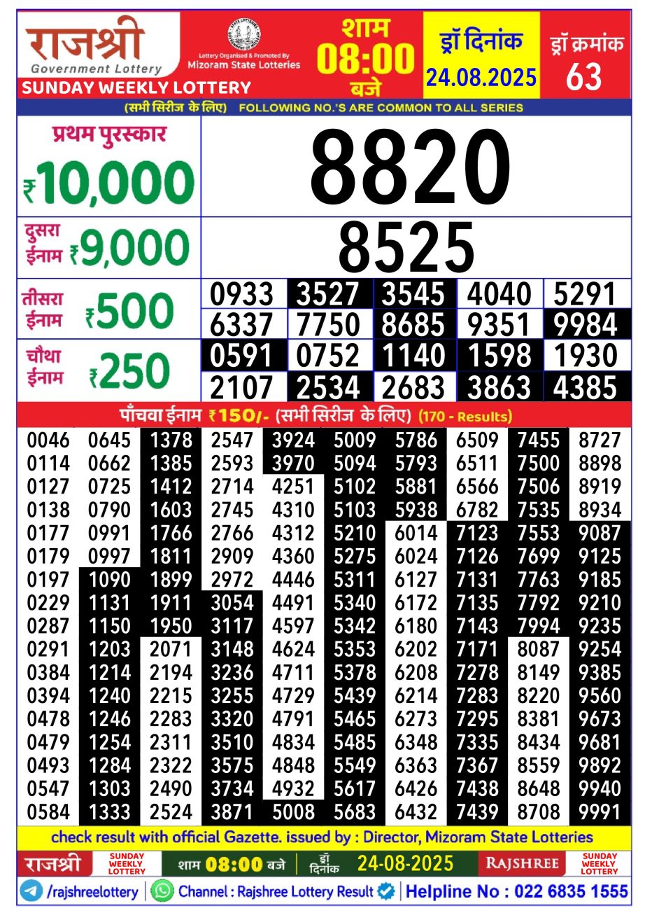 Rajshree Lottery Result 8PM 24.08.25 Share: XFacebookPinterestRedditVKDiggLinkedinMix Related Results Rajshree Lottery Result 8PM 20.10.25 Rajshree Lottery Result 8PM 19.10.25 Rajshree Lottery Result 8PM 18.10.25 Rajshree Lottery Result 8PM 17.10.25