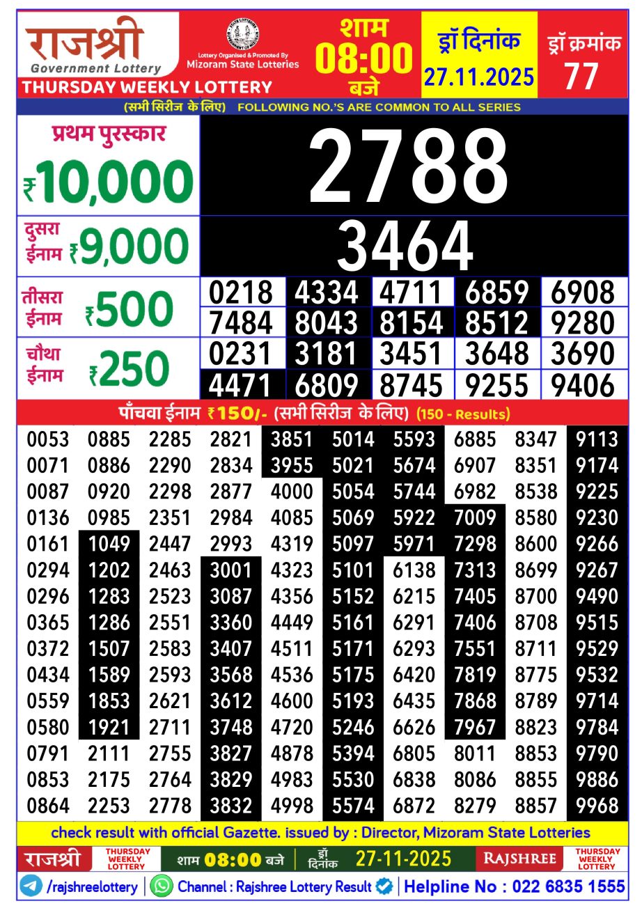 Rajshree Lottery Result 8PM 27.11.25 Share: XFacebookPinterestRedditVKDiggLinkedinMix Related Results Rajshree Lottery Result 8PM 14.12.25 Rajshree Lottery Result 8PM 13.12.25 Rajshree Lottery Result 8PM 12.12.25 Rajshree Lottery Result 8PM 11.12.25