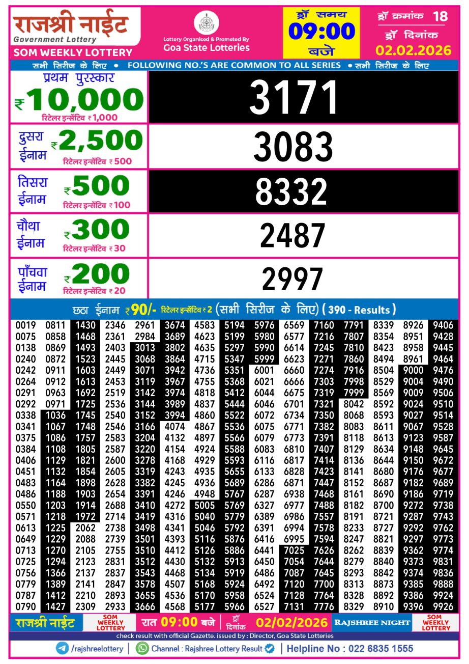 Rajshree Night Lottery Result 9pm 02.02.26 Share: XFacebookPinterestRedditVKDiggLinkedinMix Related Results Rajshree Night Lottery Result 9pm 10.02.26 Rajshree Night Lottery Result 9pm 09.02.26 Rajshree Night Lottery Result 9pm 08.02.26 Rajshree Night Lottery Result 9pm 07.02.26