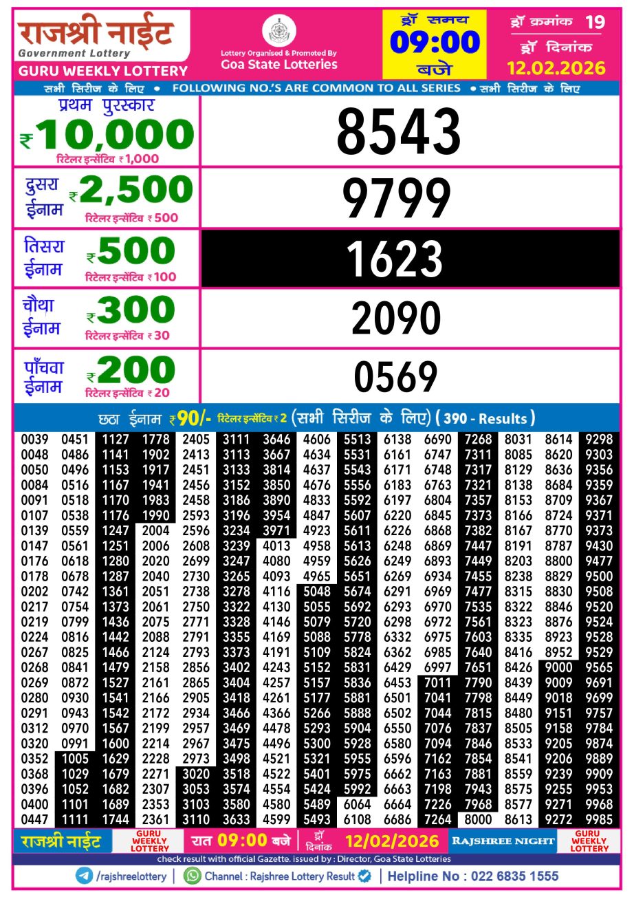 Rajshree Night Lottery Result 9pm 12.02.26 Share: XFacebookPinterestRedditVKDiggLinkedinMix Related Results Rajshree Night Lottery Result 9pm 03.04.26 Rajshree Night Lottery Result 9pm 02.04.26 Rajshree Night Lottery Result 9pm 01.04.26 Rajshree Night Lottery Result 9pm 31.03.26