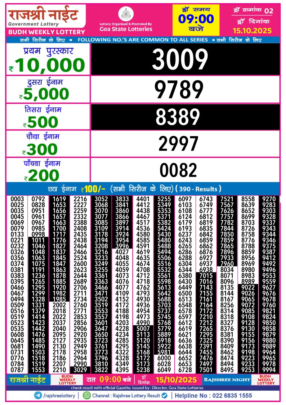 Rajshree Night Lottery Result 9pm 15.10.25 Share: XFacebookPinterestRedditVKDiggLinkedinMix Related Results Rajshree Night Lottery Result 9pm 14.10.25 Rajshree Night Lottery Result 9pm 13.10.25 Rajshree Night Lottery Result 9pm 12.10.25 Rajshree Night Lottery Result 9PM 10.10.25