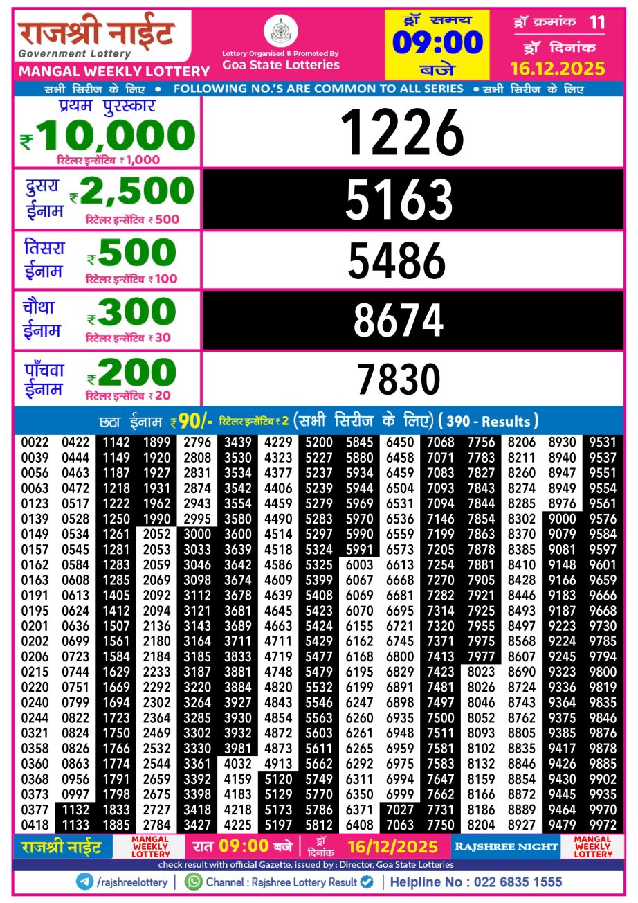 Rajshree Night Lottery Result 9pm 16.12.25 Share: XFacebookPinterestRedditVKDiggLinkedinMix Related Results Rajshree Night Lottery Result 9pm 10.02.26 Rajshree Night Lottery Result 9pm 09.02.26 Rajshree Night Lottery Result 9pm 08.02.26 Rajshree Night Lottery Result 9pm 07.02.26