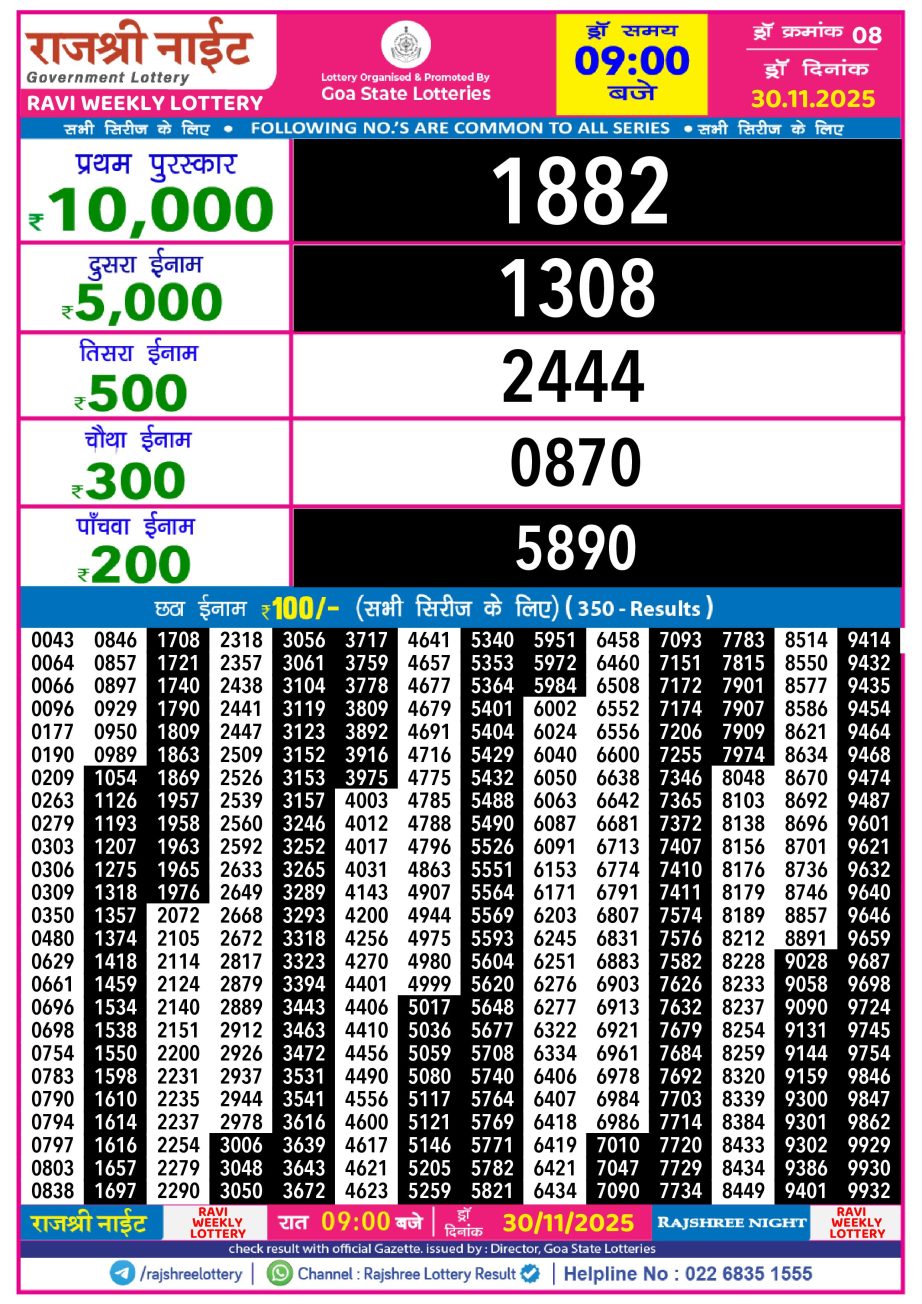 Rajshree Night Lottery Result 9pm 30.11.25 Share: XFacebookPinterestRedditVKDiggLinkedinMix Related Results Rajshree Night Lottery Result 9pm 14.12.25 Rajshree Night Lottery Result 9pm 13.12.25 Rajshree Night Lottery Result 9pm 12.12.25 Rajshree Night Lottery Result 9pm 11.12.25